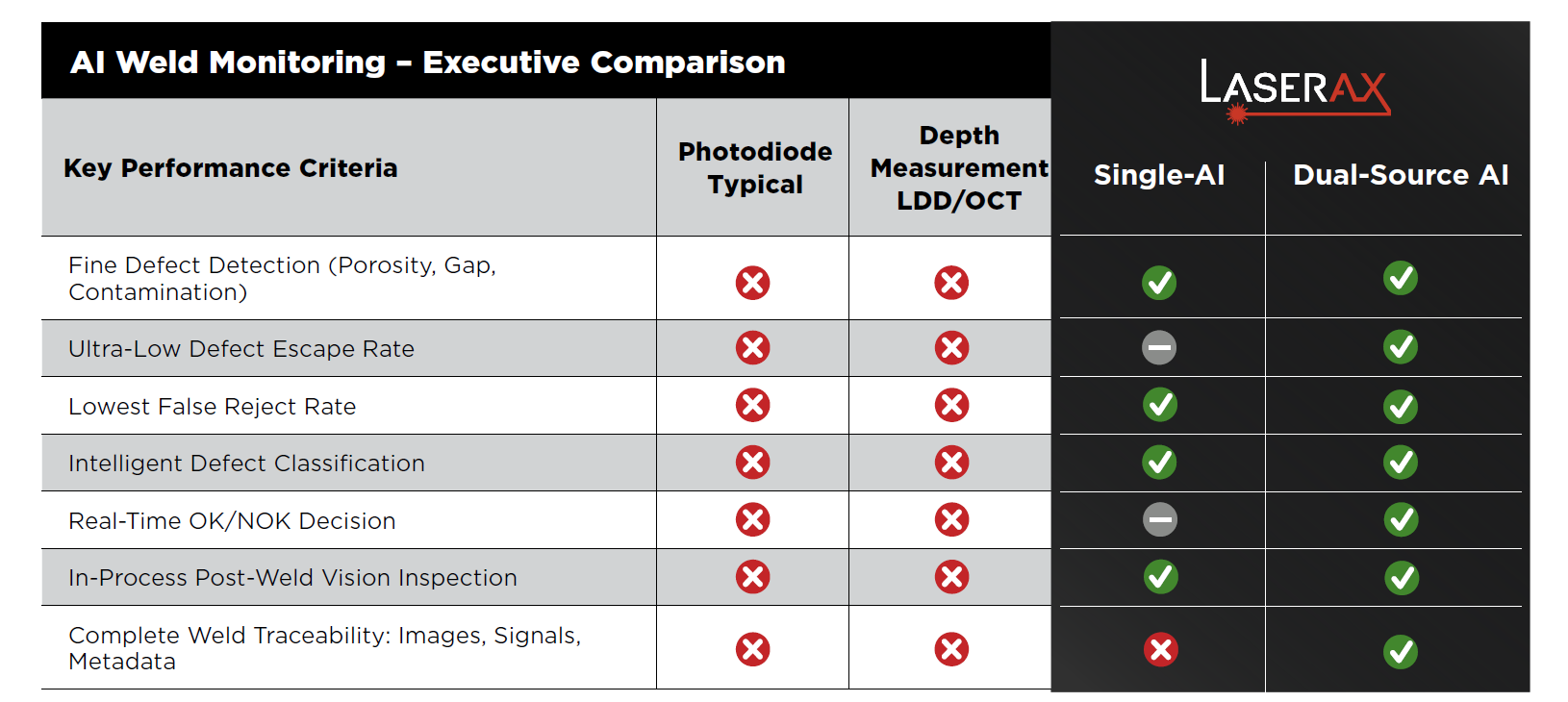 Maximize defect detection with a dual-source approach combining vision and photodiode signals. This multi-layered monitoring captures both visual and process anomalies in real time, enabling ultra-low defect escape rates and up to 700x greater detection performance compared to conventional methods.